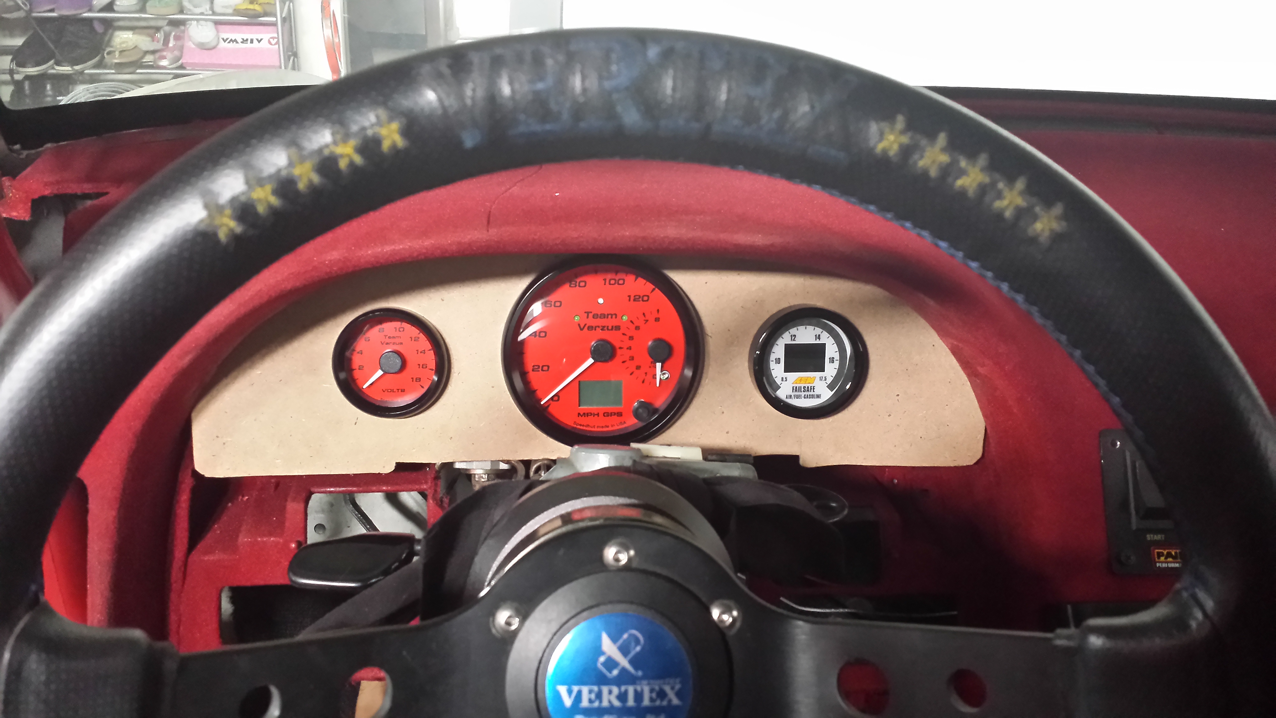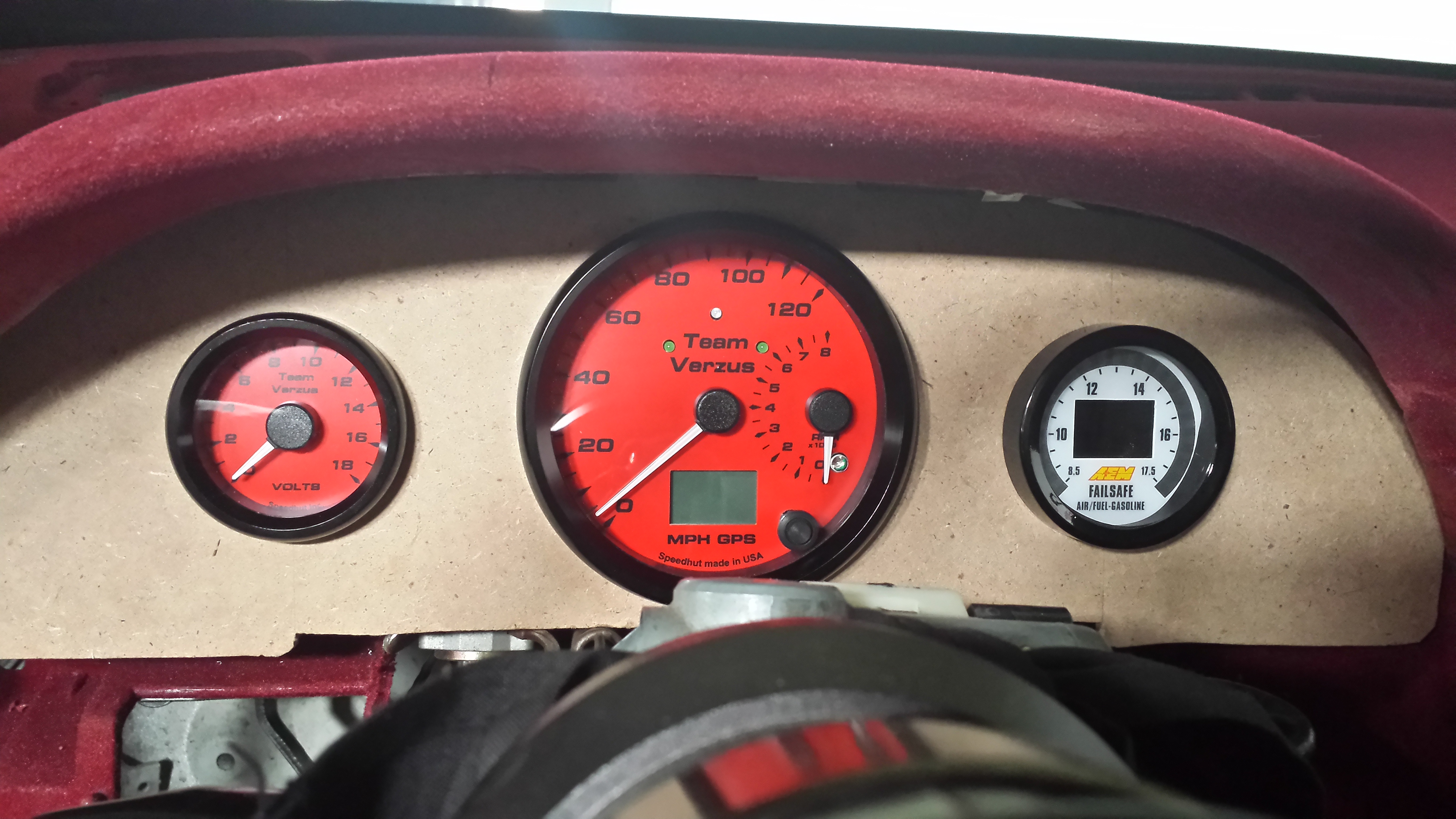 First of all, the speed hut gauges are awesome. The GPS MPH gauge allows me not to have to put in my speed sensor and run it off a GPS signal. This gauge can do much more though, 1/4 mile times, Odometer, directional indicators, etc. They also allow fully customize able faces and needles. I will get pics soon with the MDF painted and mounted, but here is the crude shots for now.