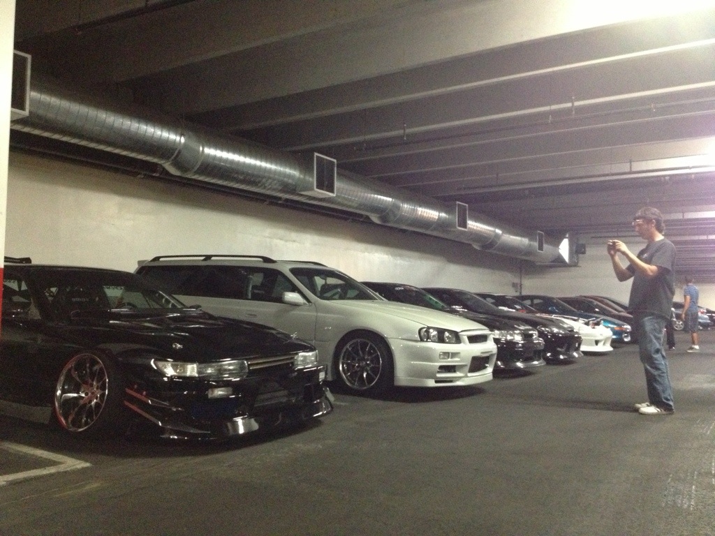 Finally got the car on the road again. It runs decent, but I’m definitely not used to an S-chassis. We button up the car and met up with some friends to head out to the Wednesday night car meet. So here we are sitting with Forrest Wang’s street S14, Ross Petty’s R34 GT-R front Stagea and Ray’s S13. Hopefully everything is all good for the next VegasDrift practice event on July 13th.